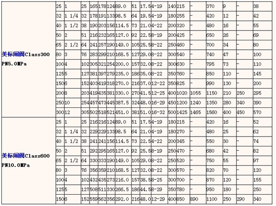 美標閘閥參數詳細說明: